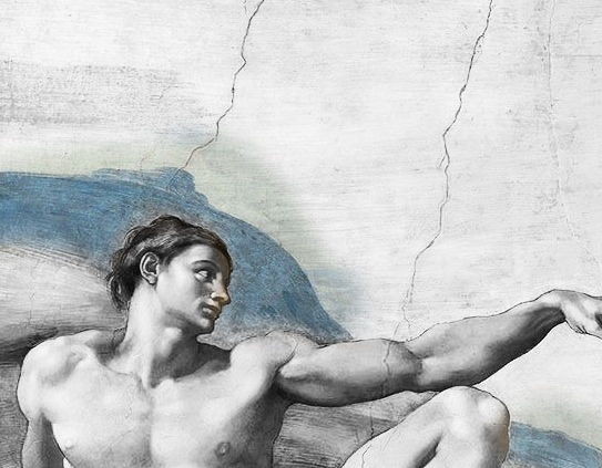 The artwork shows God reaching out to Adam(humankind)with the help of angels. God is depicted as an old wise man with grey beard and hair, though he seems to be old by his looks, he is muscular and strong which is essential for the creator of all living beings. Besides being the superior God, he doesn’t wear shining robes and crown, instead, he wears a light tunic cloth which also doesn’t cover the whole body. On the other side, Adam is painted nude and reaching his left hand towards God, whereas God reaches out his right hand which means that humans are created in the mirror image and likeness of God himself.