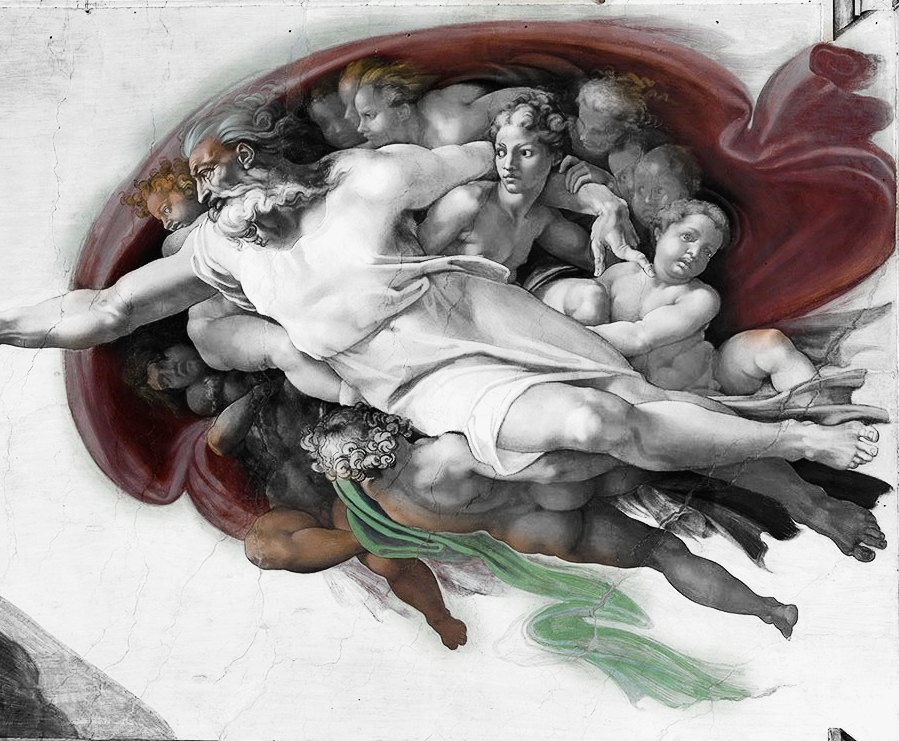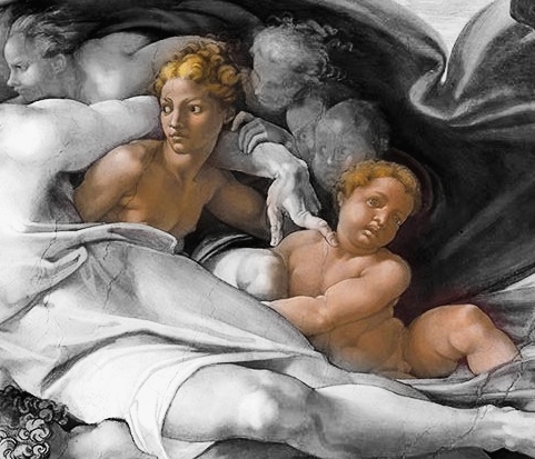 Walter Pater, an English art critic says that one among the 12 angels is Eve and others being unborn progenies. He states that Eve is the one below God’s shoulders and looking at Adam due to the feminine appearance. There is also an assumption that the angel is Virgin Mary by the Book of Wisdom. If you closely look at God’s left finger, you can see a baby cherub which is widely assumed as Child Jesus Christ. From this representation, we can understand that God is pointing his son which is the same finger used by priests in prayer mass for Eucharistic ceremony.