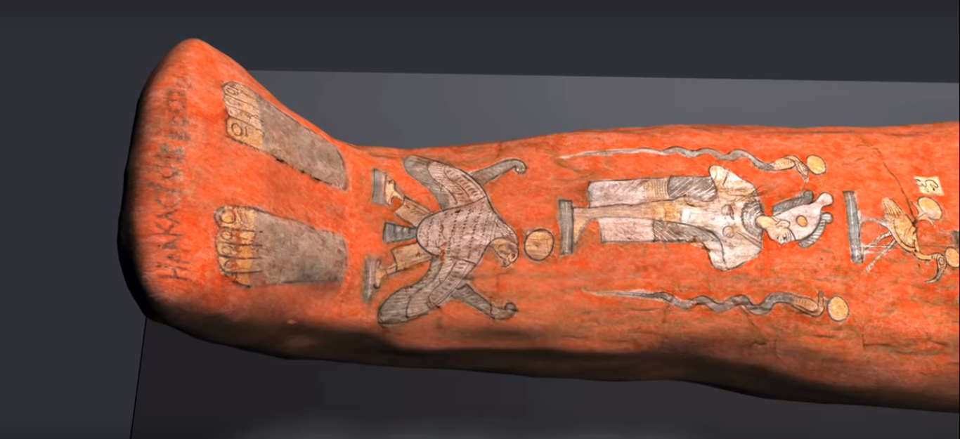 9. Symbolism about the life of Pharaoh is drawn on the cloth and name is mentioned near the legs.