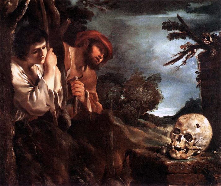 ‘Et in Acardia’ is engraved on the tomb which translates to “I’m in Acardia, too” which can be interpreted like the Death itself speaking and showing that it had arrived at utopia. Some literary people translated it to ”I was also in Acardia” which denotes that the dead were once happy living in Acardia.