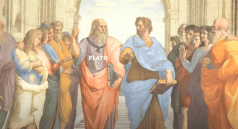 Like Socrates pointing his fingers to the sky, Plato can be seen with his fingers pointing up in Rafael’s School of Athens painting. There is a poetic way in placing wall behind Socrates where the philosophy is being stopped and the path behind Plato where his philosophy is being continued in the rightful hand to spread.
